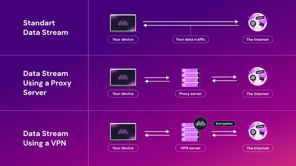 Proxieswork well to access blocked websites. They change your IP address but do not encrypt data. Faster than VPNs but less secure. Useful for streaming or simple web browsing.